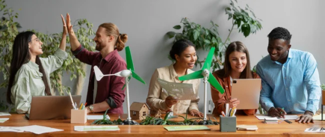 Pessoas no escritório analisando e verificando gráficos financeiros.